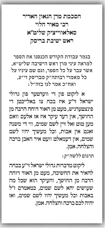A collection of words of Gedolei Yisroel can light up the darkness, and the main thing is that everything one does must be for the sake of Heaven.