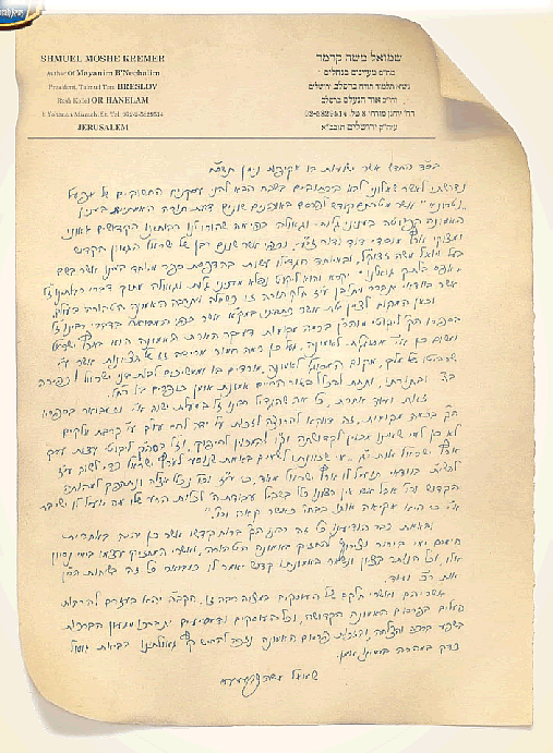 Rabbi Shmuel Moshe Kremer of Breslov, Jerusalem